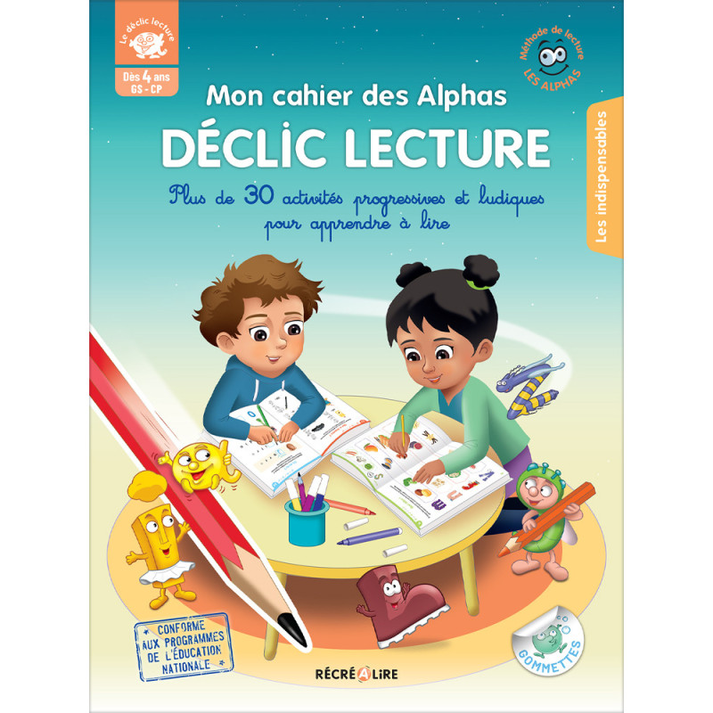 Conçu comme un véritable parcours d’éveil à la lecture, Mon cahier des Alphas – DÉCLIC LECTURE accompagne les enfants dès 4 ans dans la découverte du monde des lettres et des sons.