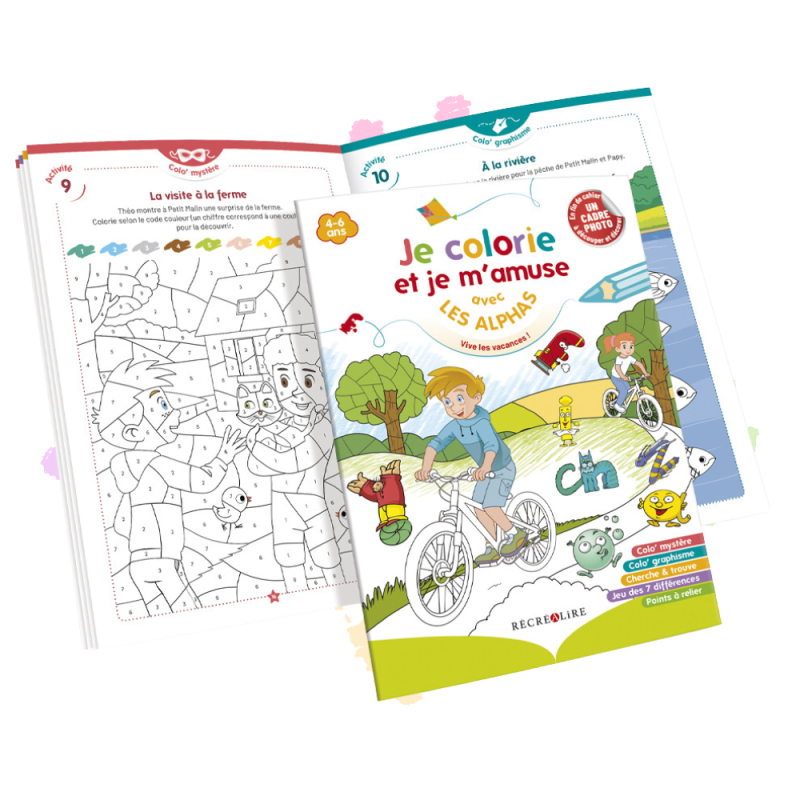 Avec Je colorie et je m’amuse avec Les Alphas – Spécial vacances, les enfants dès 4 ans plongent dans un monde joyeux d’activités ludiques pour s’amuser tout en consolidant leurs prérequis de lecture et d’écriture.