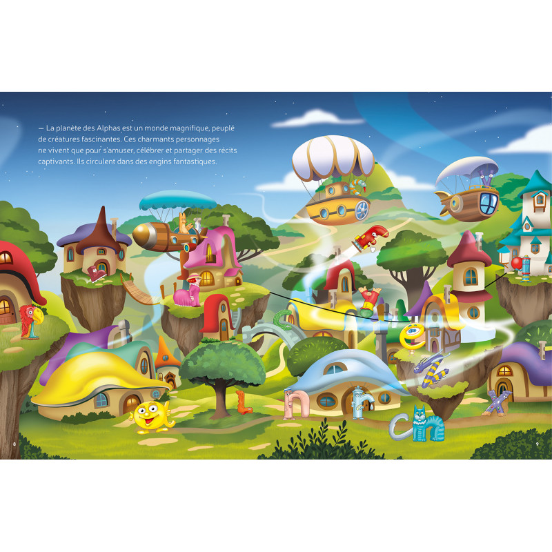 Bienvenue sur la planète des Alphas, un monde peuplé de personnages étonnants, tous liés à une lettre et à un son. Il y a Monsieur o qui fait des bulles, la fée é, ou encore le gulu, un étrange monstre glouton... 🪐