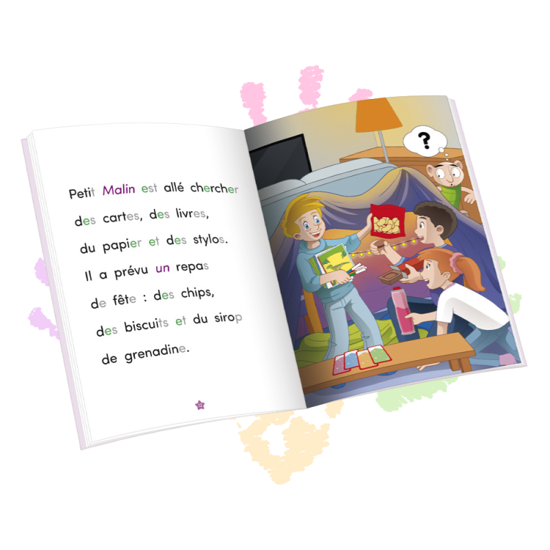 🎉 Ce soir, Noémie et Théo viennent dormir chez Petit Malin ! L’ambiance est à la fête : ils rient, bricolent, et surtout… ils construisent une cabane géante dans le salon ! Couvertures, coussins, lampes de poche : tout y passe pour créer un coin magique.